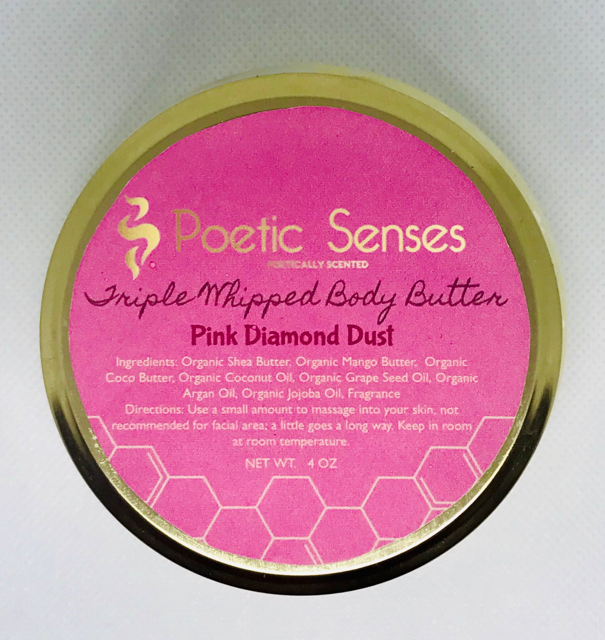 Unveil radiance with Poetic Senses Pink Diamond Dust Triple Whipped Body Butter—a luxurious moisturizer that turns daily care into an enchanting ritual. Crafted with Shea, Mango, and Cocoa Butters, this decadent formula is triple-whipped to a creamy, cloud-like texture that melts effortlessly into your skin, delivering deep hydration, nourishment, and long-lasting softness without the greasy feel.